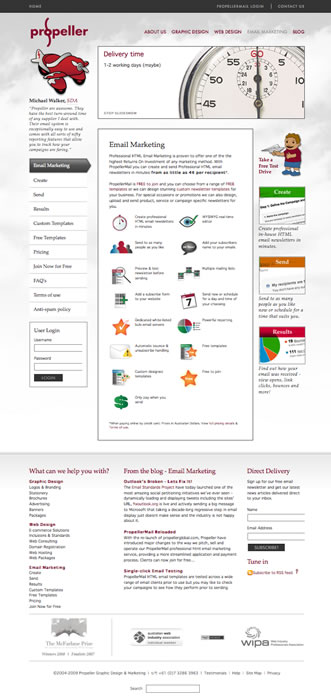 Alternatively, the feature icons used on our email marketing landing page, are used individually along with text in a floated list. In this case, I’ve chosen to arrange all of the icons in one long thin strip (right). Applying some thought to the arrangement up-front can save a lot of headaches.